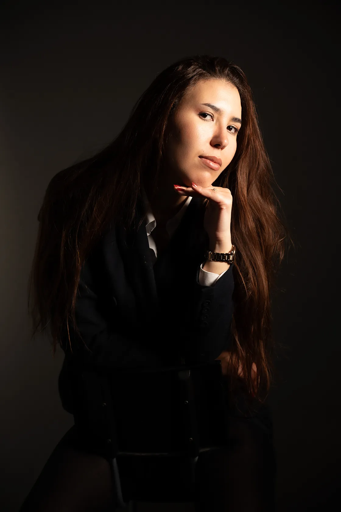 J’utilise la lumière naturelle pour sa douceur et son authenticité, ou le flash pour sculpter les visages et créer une atmosphère plus affirmée, toujours au service du portrait.